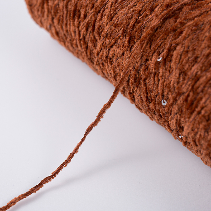 Casa / Prodotti / Filato di paillettes poliestere / Filato di chenille marrone chiaro in poliestere paillette filo